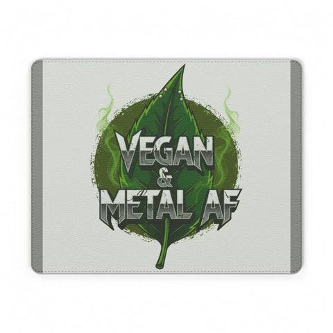 Feel the clash of green values and heavy riffs every time you reach for your mouse. This PU leather mouse mat pairs a bold “Vegan & Metal AF” emblem with a smoky, leaf-centered design—raw and tactile but easy to keep clean. The smooth leather-like surface gives precise mouse glide for focused work or gaming, while the non-slip backing keeps your setup steady through long sessions. Printed with sustainable inks and made in South Korea, it brings attitude and eco-aware style to desks, home studios, and merch shelves alike.